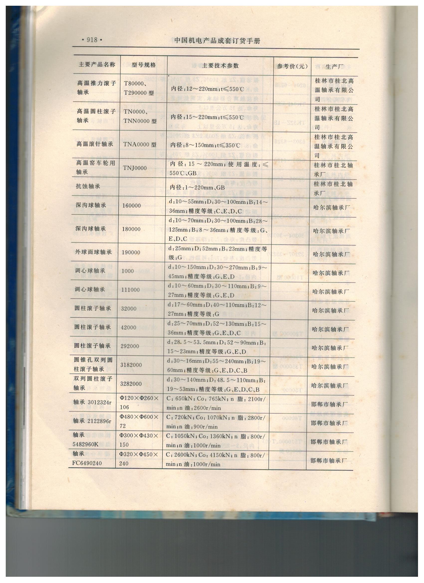 我公司生产的高温轴承收入《中国机电产品成套订货目录》(中册)