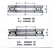 2. 低速<100转/分:无保持架,满球,分离的T50000型,单列球充满滚道,承载1.4倍,因摩擦小而磨损小,可以不添加润滑物;